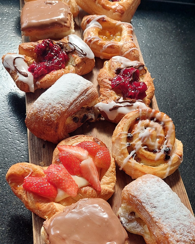 Mijn assortiment bestaat uit diverse koffiekoeken, maar ik heb ook streusselkoeken in de aanbieding.