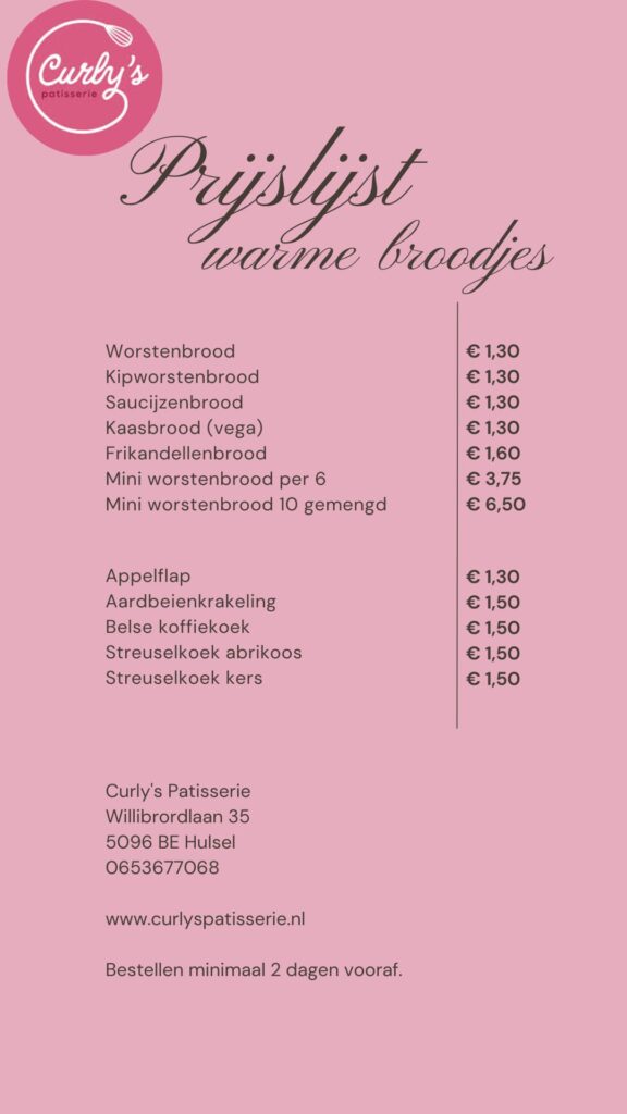 Hieronder vind je de prijslijst van mijn assortiment voor bedrijven.
